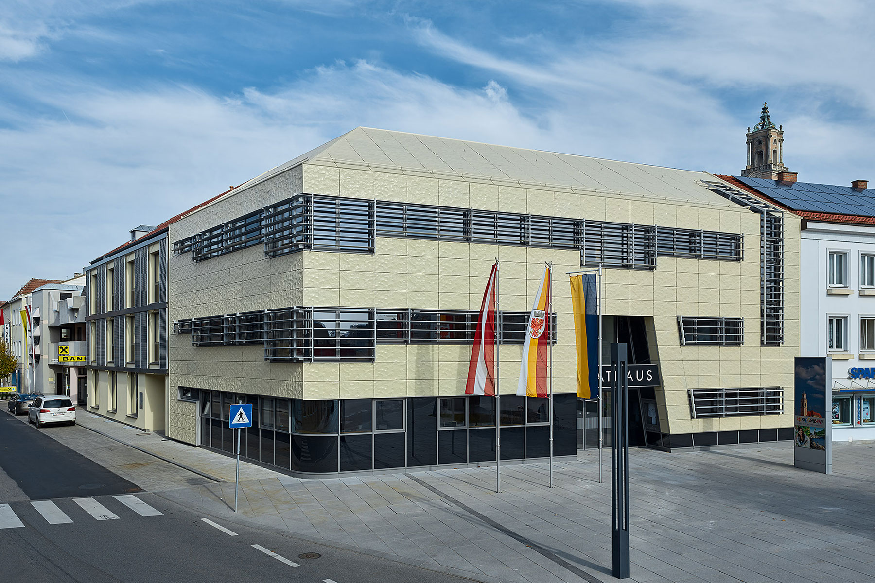 | Bauaufgabe | | Neubau eines Rathauses und Adaptierung eines Fachärztehauses